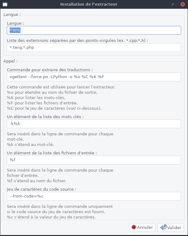 Upload a twig.pot done with poedit (then xgettext) Then can surely update sh script :) twig.pot (18,365 bytes)