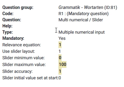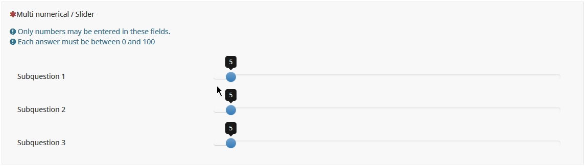 | Description | When creating a multi numerical question with slider option, See screenshots | ||||