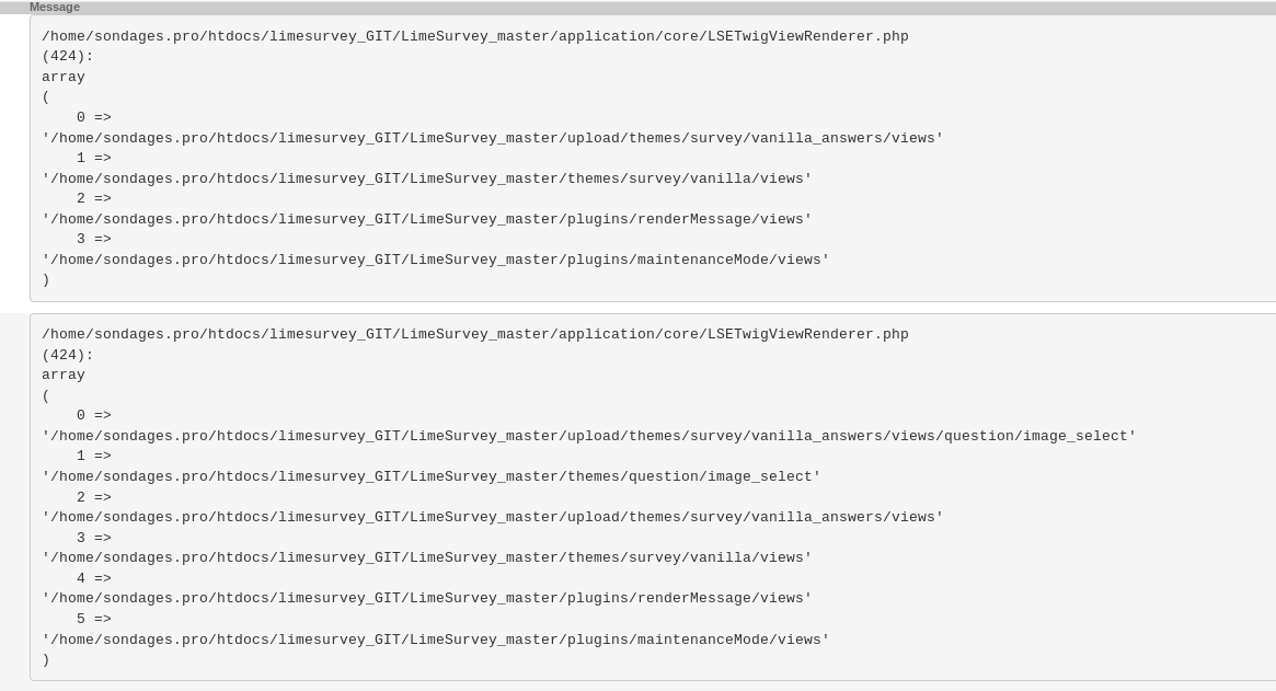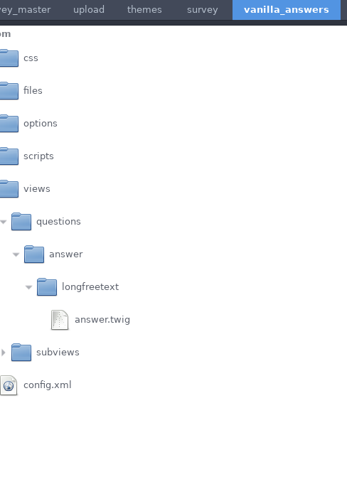 | 2018-07-17 15:23 | DenisChenu | Summary | Unable to update answers twig part in theme => Unable to update answers twig part in Survey theme |