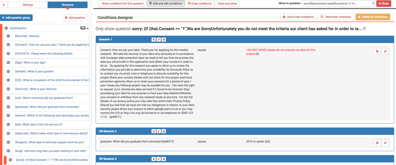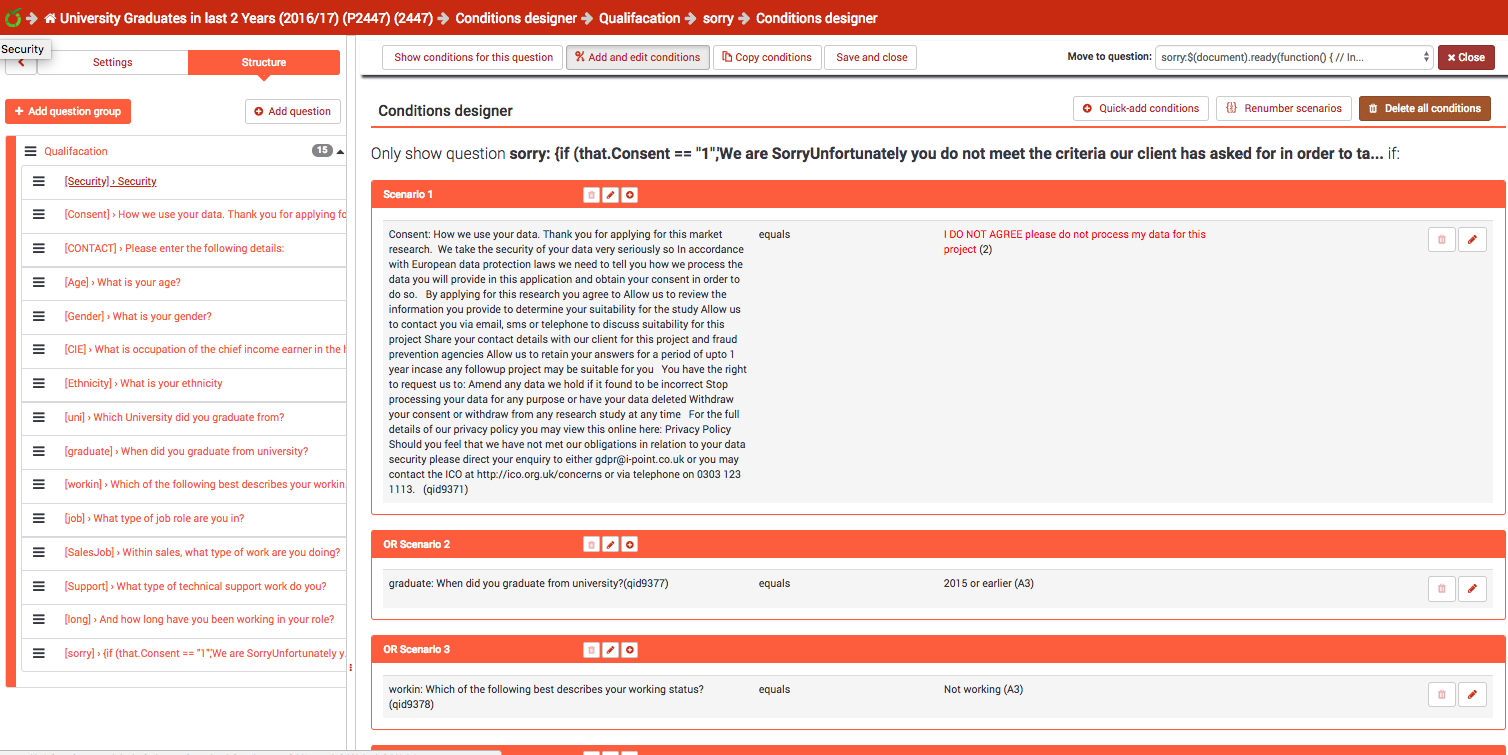 Hi Mazi, yes i regularly update whenever there is a new version available, first we push to the staging area and and depending on what included and no major issues we push to live. both done via comfort update. So testing your theory that this was a cache issue, I have just cleared all history / cache and cookies in Safari (latest version) and the problem still exists. So that you can try and replicate this. we always build our surveys (between 2 - 5 a day) from a template (attached limesurvey_survey_977585.lss.xml) So the process i have just followed is: