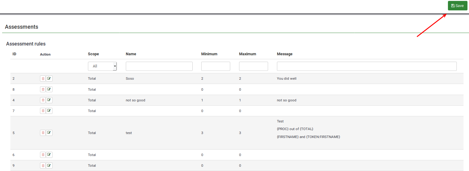 | Description | Create an assessment. Click on the save button. New assessment is added (see screenshots, after 9, I got assessment with id 12) | ||||