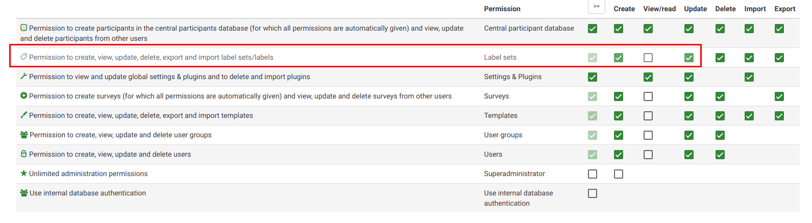 | Description | So, I created a new user and granted him almost all the label sets related permissions (with the exception of the view one). However, if the view one is not given, then the user cannot see from "Configuration" the "Manage label sets" button. | ||||
