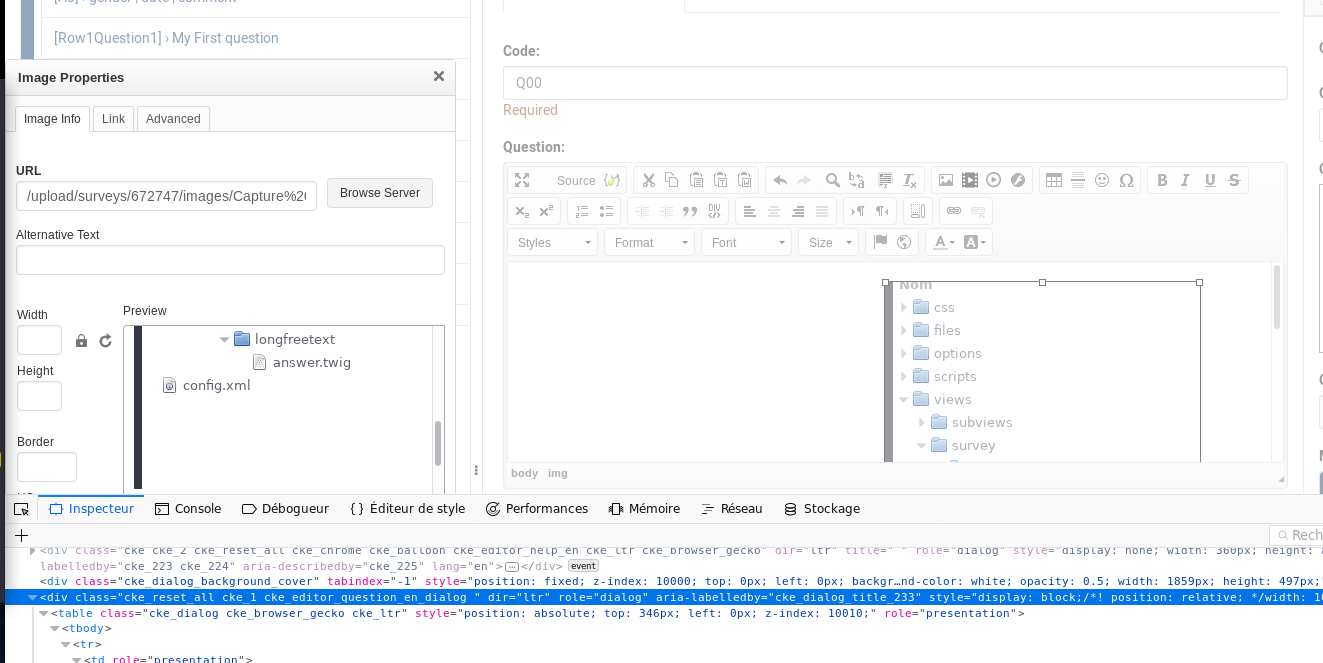 @DenisChenu I cannot access the log of the KCfinder popup because it's freezing. Any suggestion to see that log? |