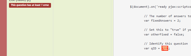 | Description | CheckLogic is counting QID inside javascripts as undefined variable. Is there a plan to cope with these kind of variables which only get defined during runtime? | ||||