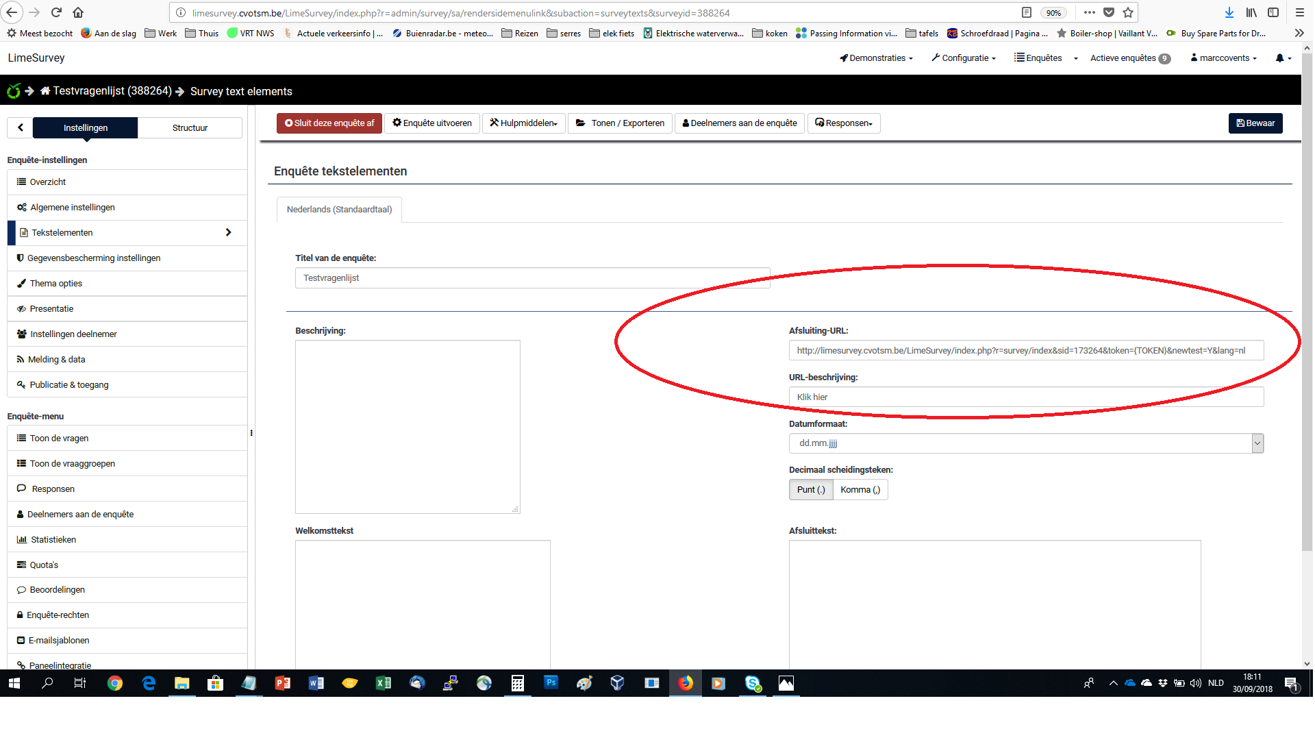 | Description | I have an issue with the end-url setting. I'm using Limesurvey 3.14.9+180917 | ||||