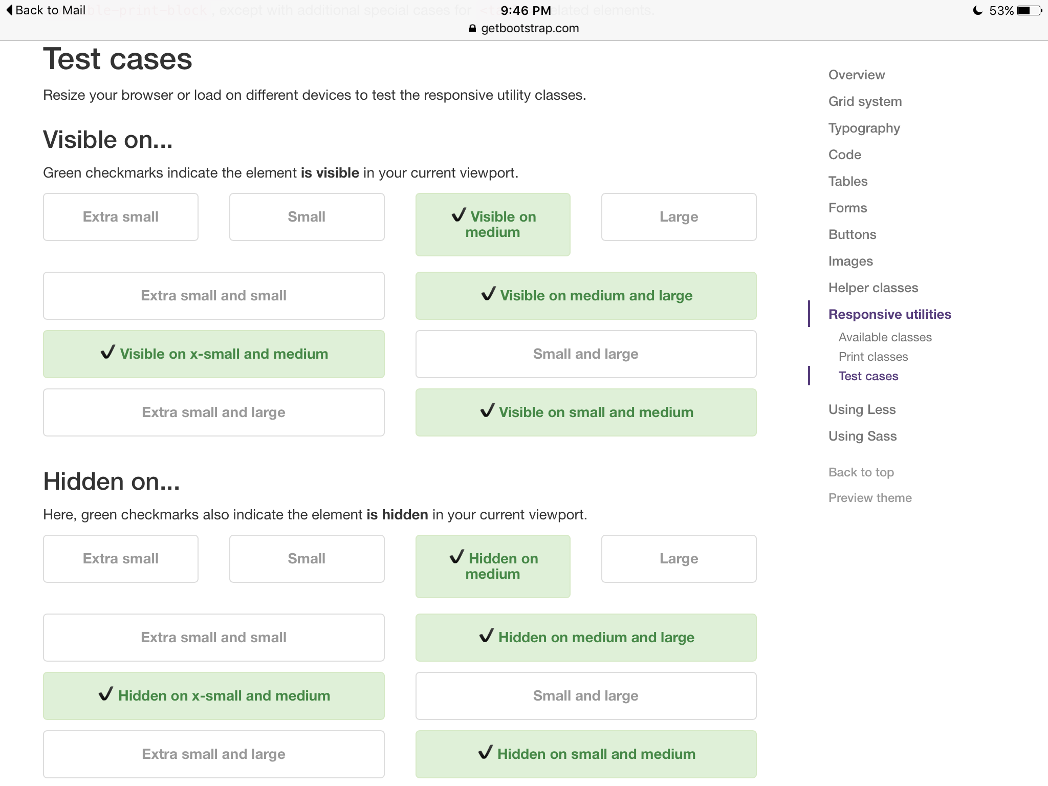 | Additional Information | Also attached are Bootstrap test cases for the iPad. It is a 3rd generation 9.7" iPad with retina display running iOS 9. Resolution is 1536x2048 pixels at 264 PPI. | ||||