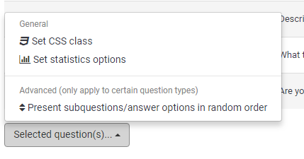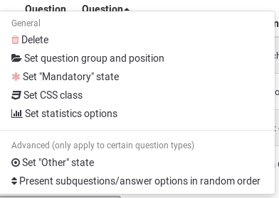 | Description | At this moment there is a possibility to change some aspects of questions through a bulk action. I would very much like iit if this could be expanded to include setting questions mandatory/not mandatory. Use case: for development you often do not want questions to be mandatiory, for production you do want that. | ||||