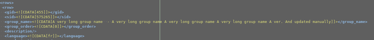 | Description | When importing a lss with more than 100 character for group_nale : broke when importing (and cut silently with debug=0) | ||||