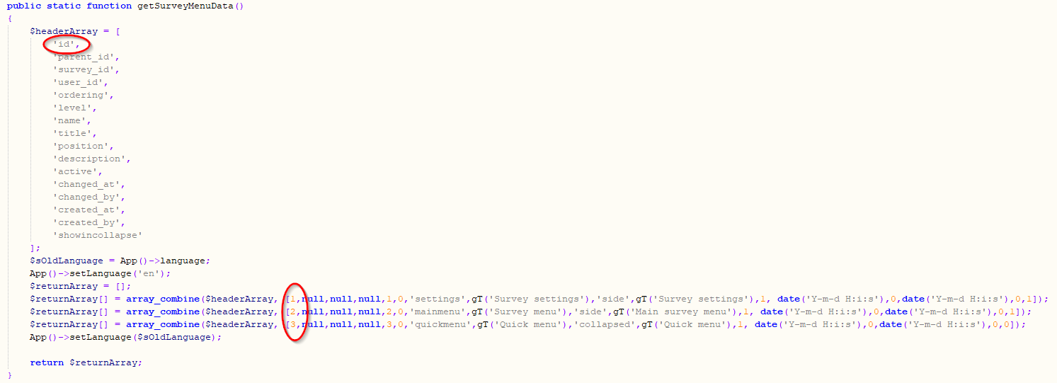 If I look in the function getSurveyMenuEntryData() in \application\core\LsDefaultDataSets.php I see that the menu_id are hard coded between 1, 2 and 3. You should check if the problem also occurs in other tables (I don't think so) and in any case you have to take care of this in future developments. | ||||