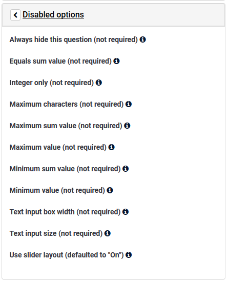 | Description | Currently, the only way I can see to hide unnecessary question attributes in a custom question theme is to set the <inputtype> to null in the config.xml file (see attached). This effectively disables the attribute setting but does not totally hide it from the survey author. Is there a way to completely remove the attribute setting from the edit-question view? Sample config file and theme attached. | ||||