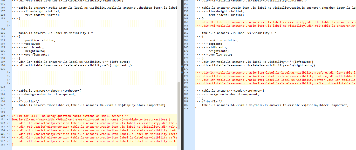 | Description | LS 3.12.3 in IE11, for an Array type question with 6 answers, when the screen is resized to a point where the answers start to stack, the radio button disappears. In Chrome the radio buttons appear as expected. | ||||