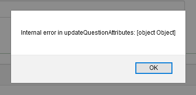 ...but when I try to assign this theme to a new question I get this error and the interface hangs, cannot access questions, I have to delete the survey. Another question theme bug with 4.x? |