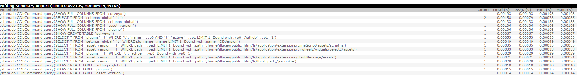 Enabled debug on code (2) and SQL (1). I don't get any error messages, but screenshot shows queries. |