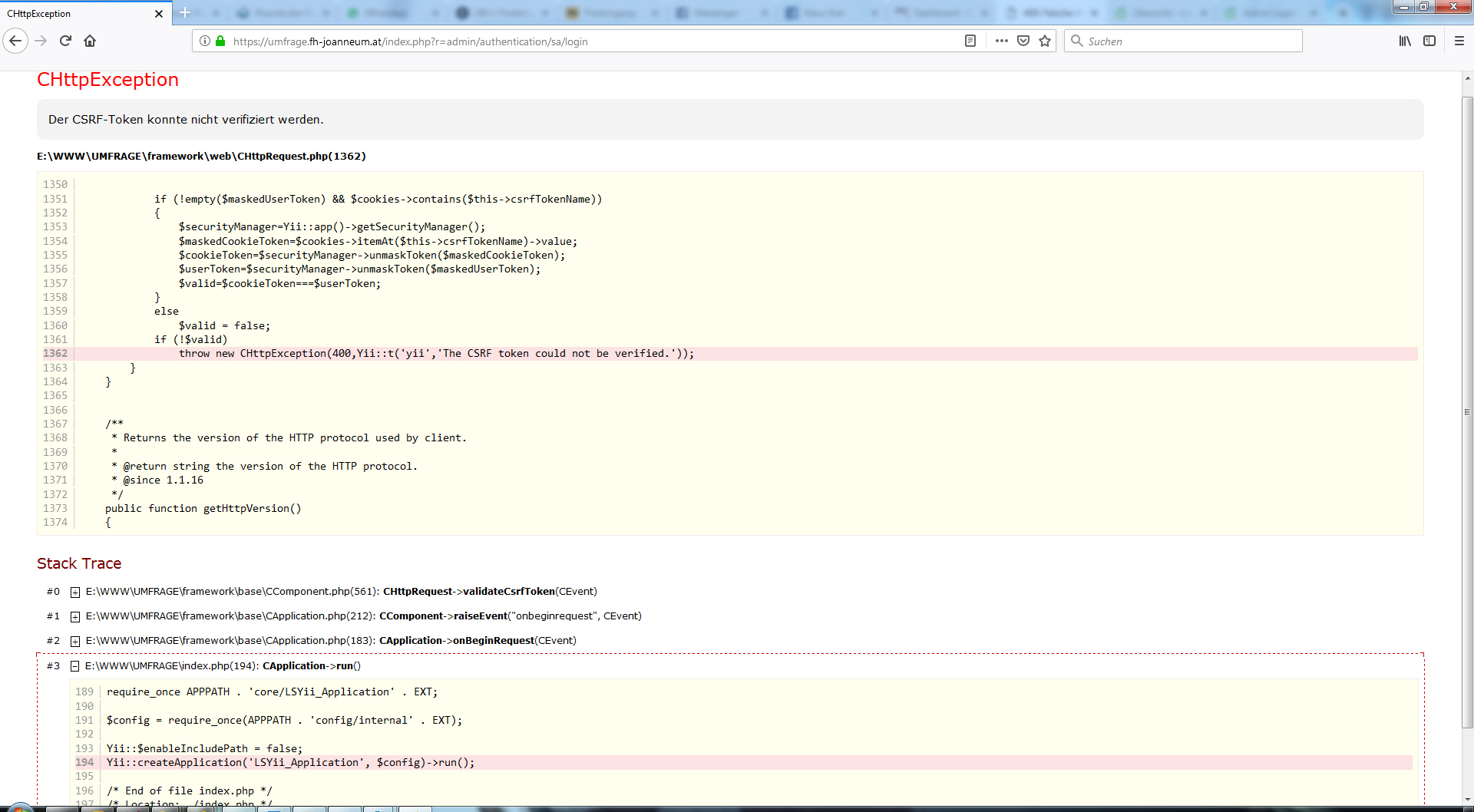 | Steps To Reproduce | Login, dann leere weiße Seite, dann F5 und dann kommt Fehlermeldung. | ||||