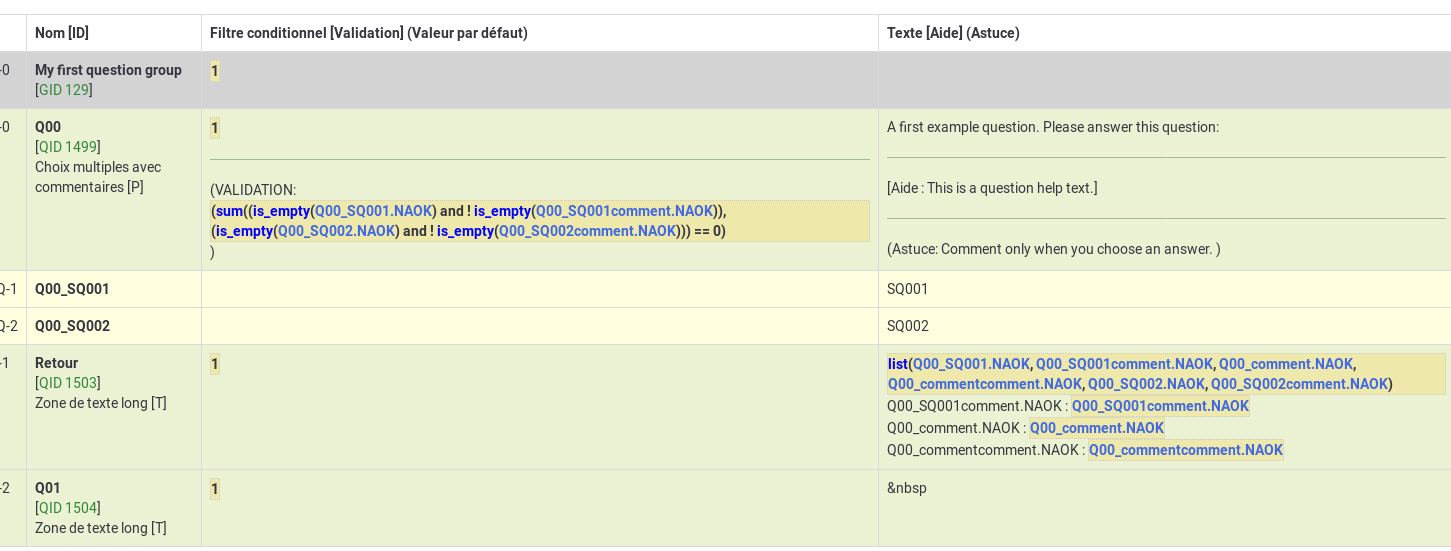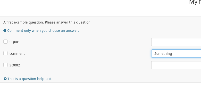 | Description | If you add comment as Subquestion code in multiple text this comment : EM have some issue | ||||