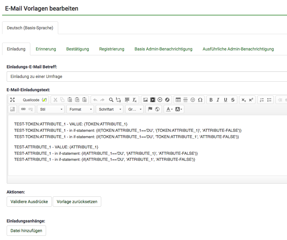 | Description | I fugure out with very tedious try & error, that the Expression Manager does not work consistent or at least expect different placeholders/expressions in the email-template and text-editor for all the other survey-places. See Forum-Topic for Details: https://www.limesurvey.org/forum/design-issues/117048-email-template-if-statement-with-placeholder-token-does-not-work#177430 So, hulch ment: For that I wrote an other report: https://bugs.limesurvey.org/view.php?id=14287 But at the end, at least the button «validate expressions» in Expression-Manager and the code behind has a bug. Because with «wrong» Placeholder in email-template {TOKEN:ATTRIBUTE_1} there is NO «error marking». But 1 step before, there must be a bug in the code. Because: