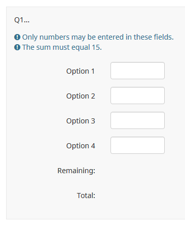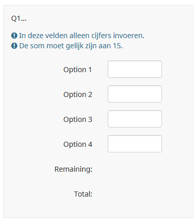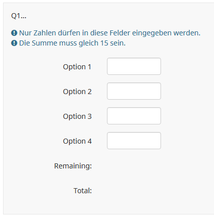 | Description | The "Remaining" and "Total" labels in a multiple-numeric question are not translated in German or Dutch (and maybe other languages). See attached screenshots and .lss file. | ||||