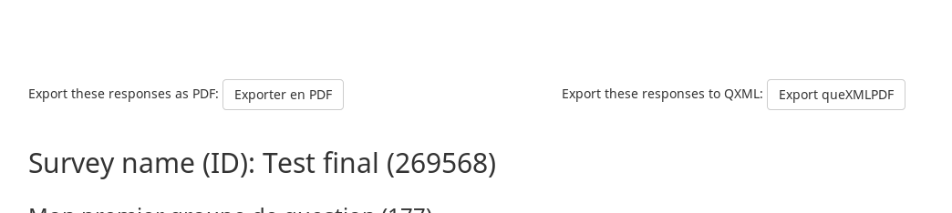 | Description | The strings : Export these responses as PDF + Export these responses to QXML + Export queXMLPDF are untranslatable | ||||
