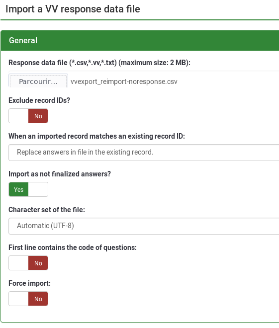 | Description | When trying to import a vv file with only id + token + date : receive «Import failed: No answers could be mapped.» | ||||