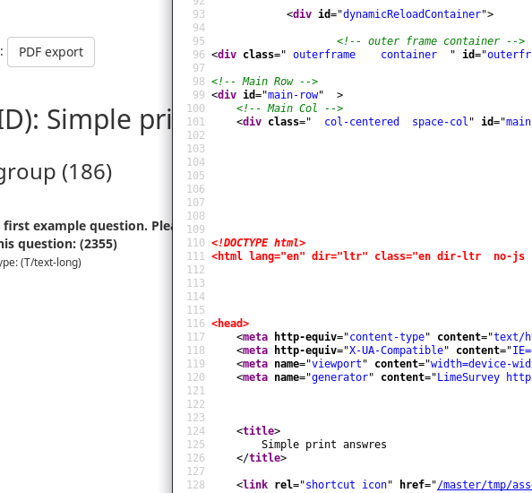 | Steps To Reproduce | Import included sur ey (or any survey with vanilla template) test print, look at HTML sourve | ||||