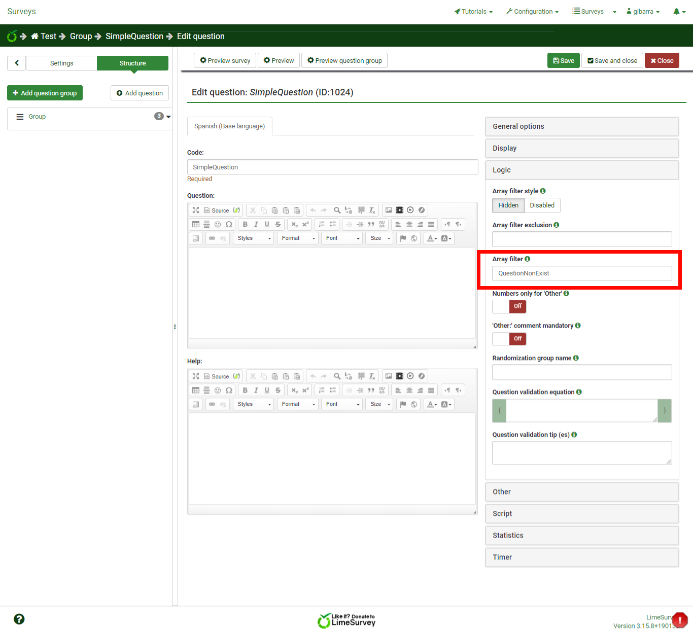 | Summary | 14474: Check question code entered in logic array filter | ||||