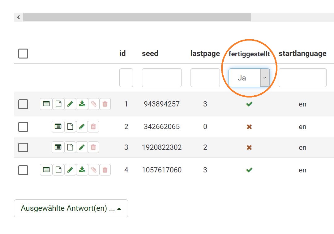 | Description | In the survey responses table, there is the possibility to filter answers (completed: all, yes, no). Nothing happens after choosing an option. | ||||