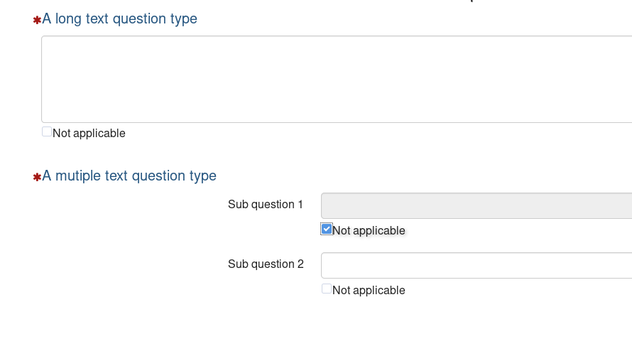 | related to | 18332 | closed | DenisChenu | Feature requests | Mandatory soft must be related to Question not Page |