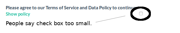 | Summary | 14592: Data Policy checkbox difficult to read for people with vision disabilities | ||||