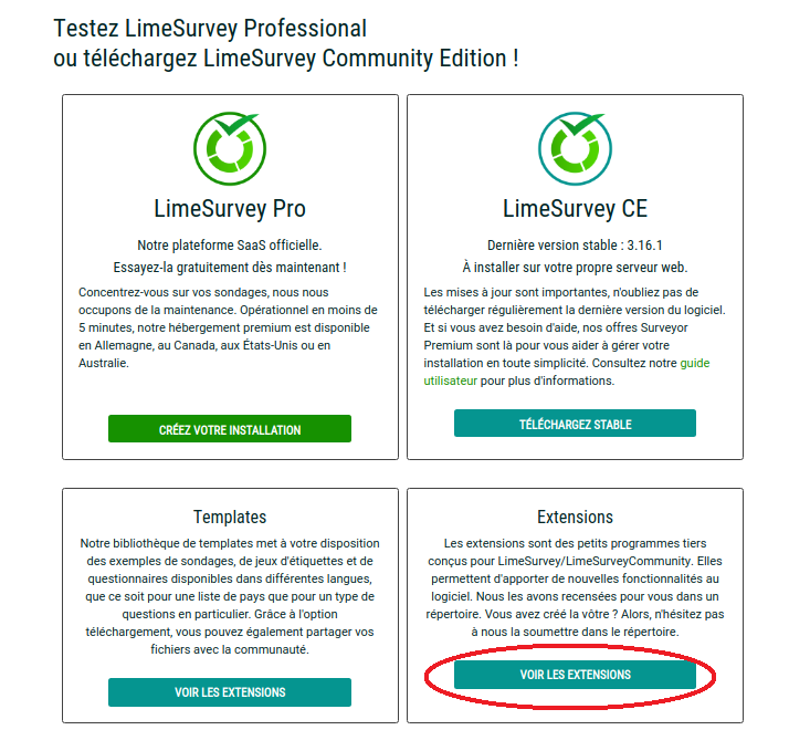 | Description | Click on the link from the screenshot (french version). You are redirected here: https://www.limesurvey.org/index.php/fr/community/extensions (error 404) | ||||