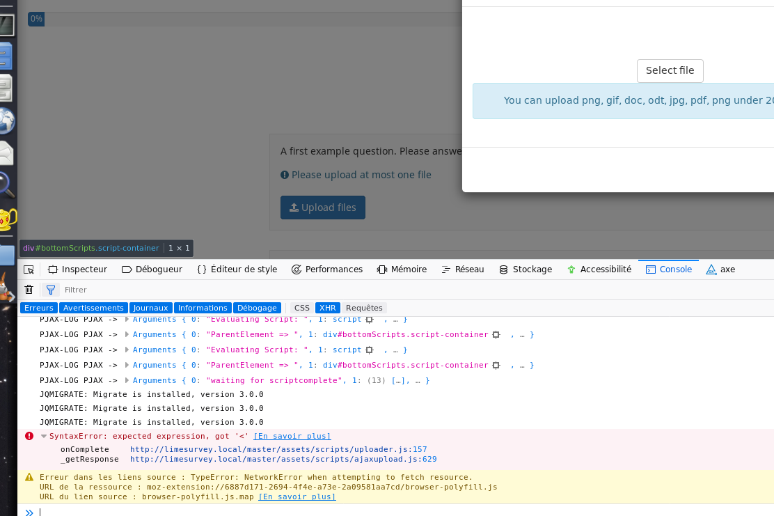 | 2019-06-04 14:09 | DenisChenu | Summary | Uploading file with error : no clean error shown => 500 error with uploading file with error : no error shown |