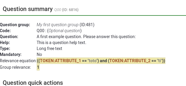 | Summary | 14719: Expression Manager show valid TOKEN:attribute in anonymized survey | ||||