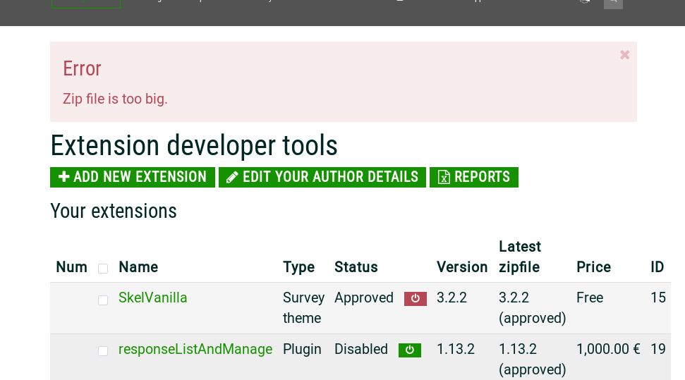 My code check for zip bombs, so it's the unzipped size that matters. Hm. Can I shrink it, or should I ask Carsten to increase the limit? |