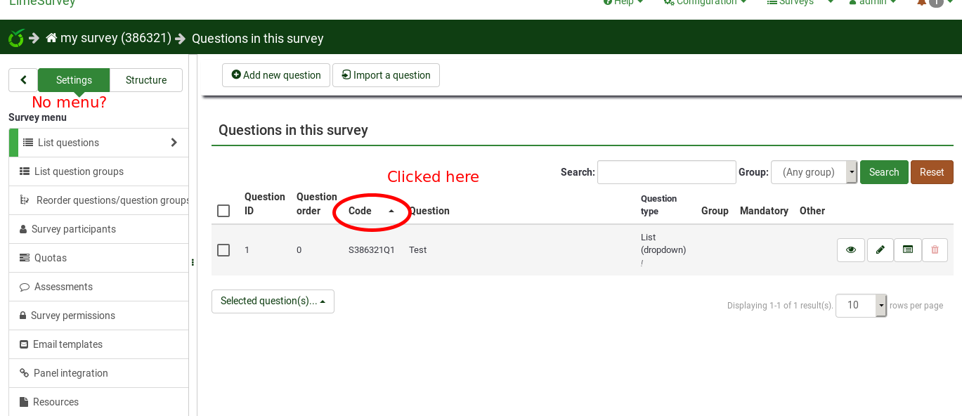 | Summary | 14810: Left menu disappears after sorting question list | ||||