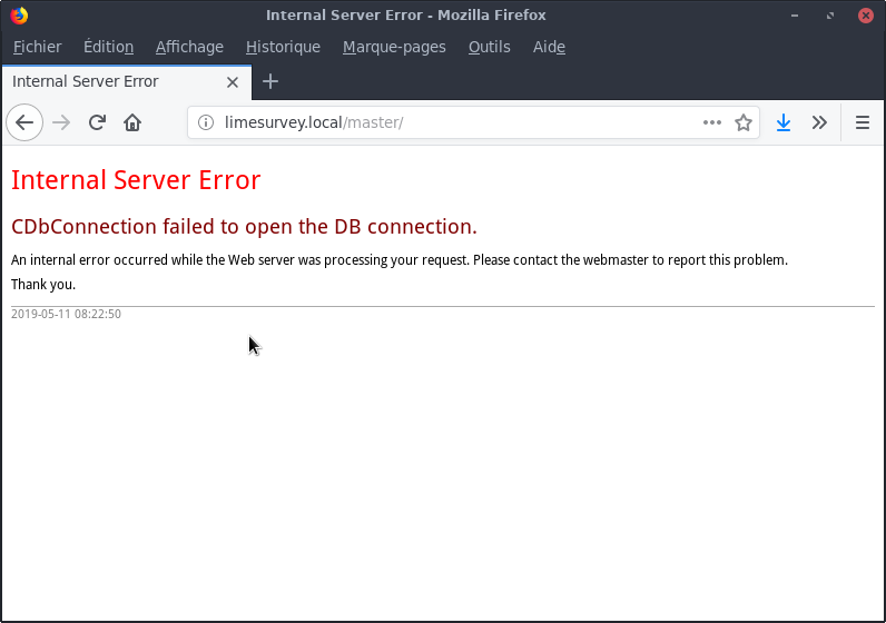 | 2019-05-09 16:07 | DenisChenu | Summary | No error is shown if DB is broken => No error is shown at debug=0 if DB is broken |