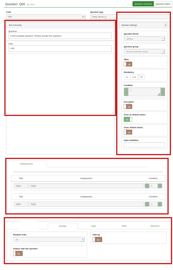 There are a clean separation between Answers block + Subquestion block + Advanced settings block . Put Subquestion as same place than advanced settings it's a big error. |