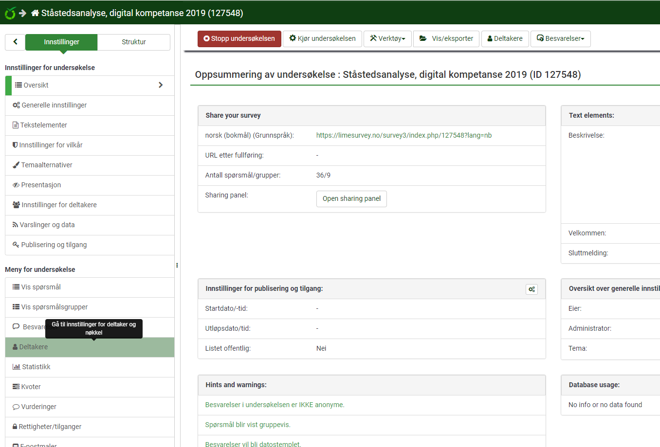 Here is a couple of them. Edit a survey, select settings - overview. You will see some string in the screenshot in English. |