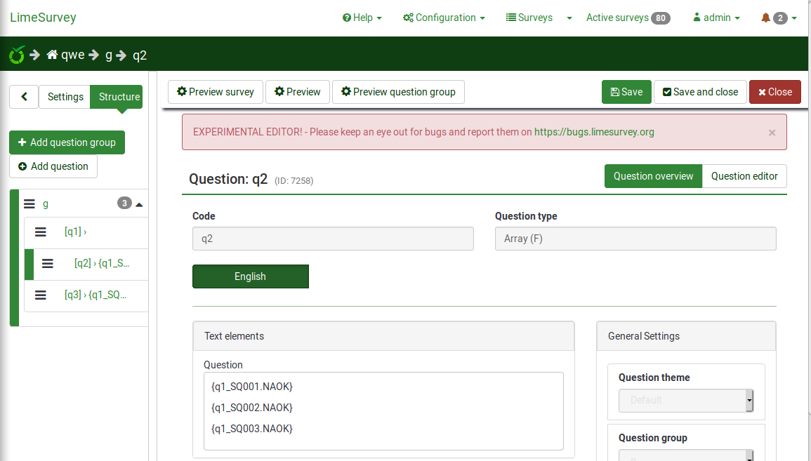 | Complete LimeSurvey version number (& build) | 4.0.0-beta | ||||