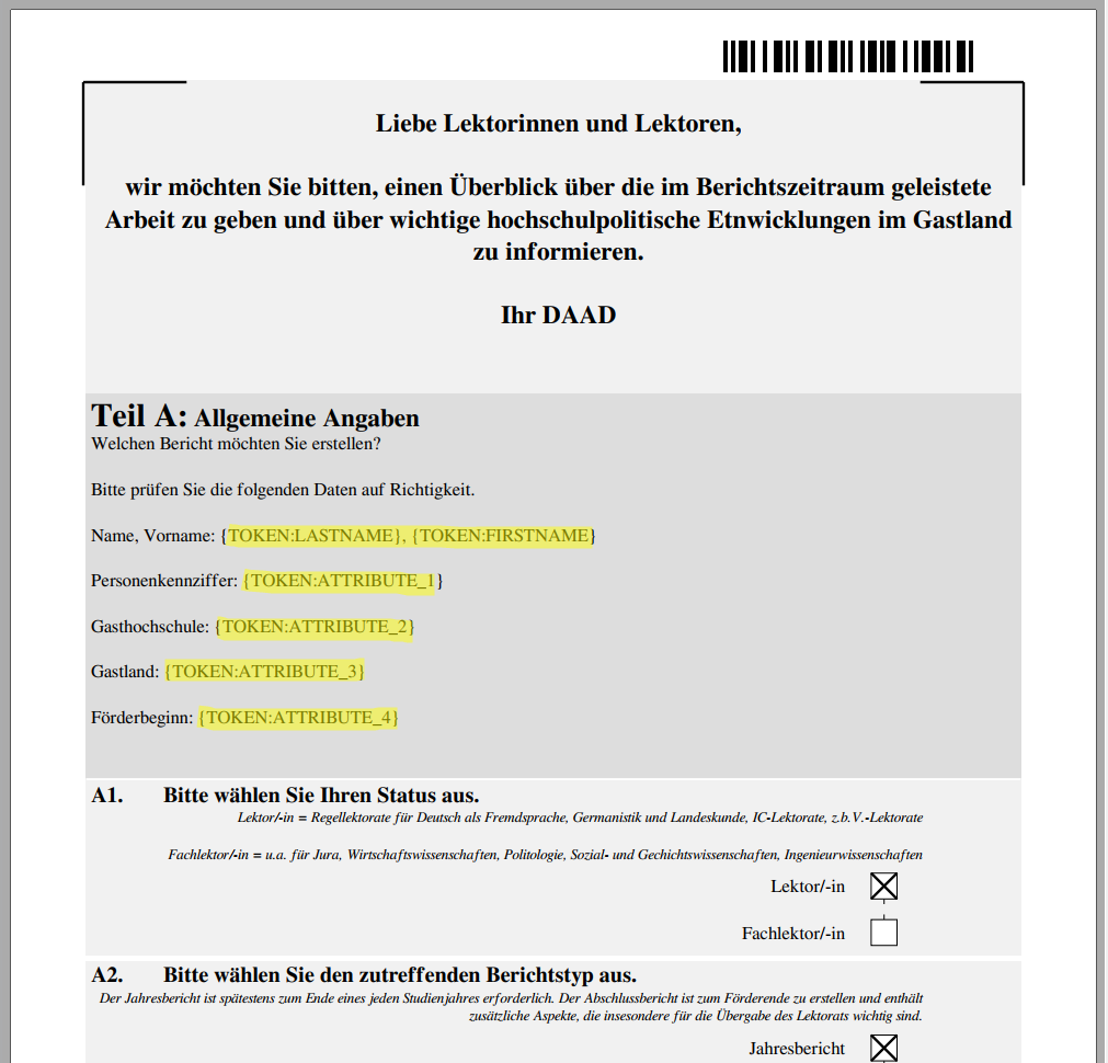 | Description | If you are exporting a survey response as queXML PDF document, the placeholder for {TOKEN:FIRSTNAME} or {TOKEN:ATTRIBUTE_X} are not replaced properly, see attached sample PDF. | ||||