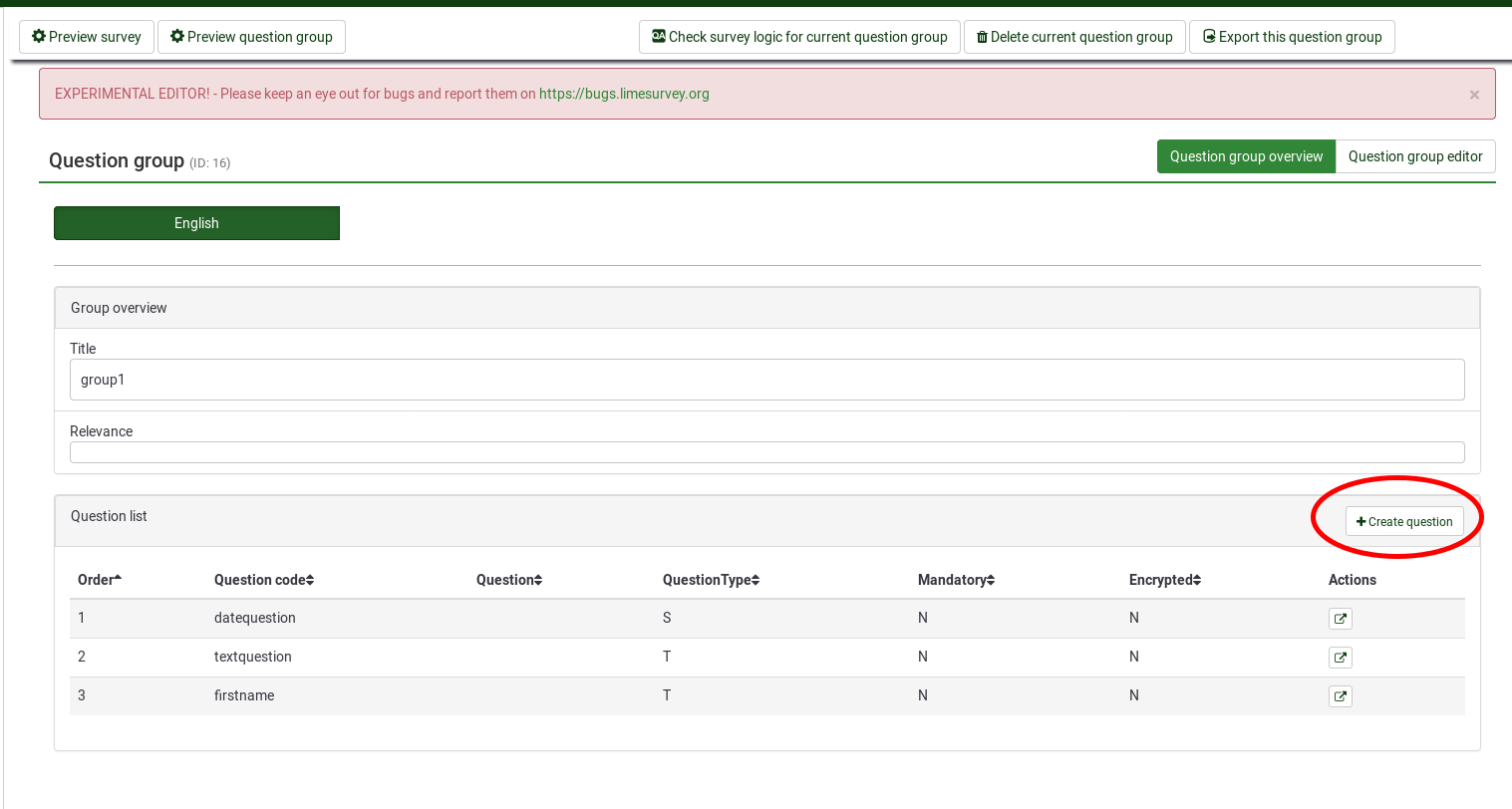 | Summary | 14953: "Create question" button leads to create question group form | ||||