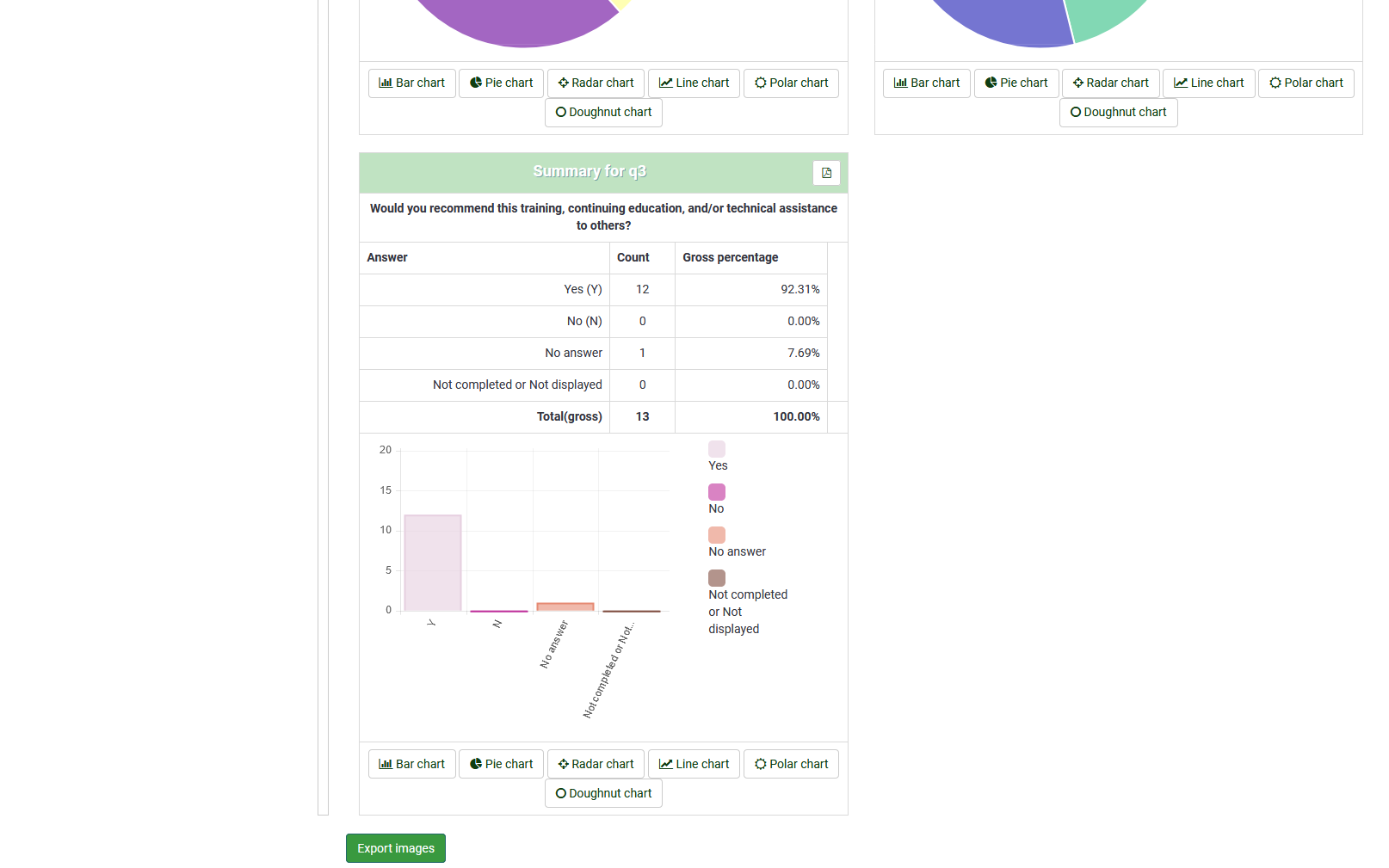 | Summary | 14971: "No answer" and "Not Completed or Not Displayed" not showing in legend of pie or doughnut charts | ||||
