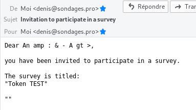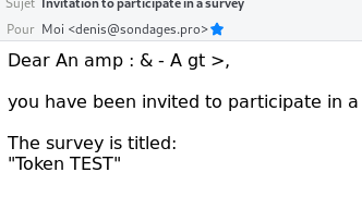 Only real issue : when sending email as text (Survey setting : Use HTML format for token emails: to NO) |