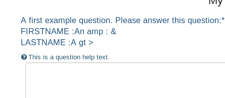 Escaping & is correct. But how is showing & as the content instead of & relating to the stackoverflow article? The XSS filter is not used and complains about that "feature" is low. Most users are working with XSS filter off. Most Limesurvey installations have only 1-2 users, which are mostly having a user role, which never expose them to the XSS-filter. |