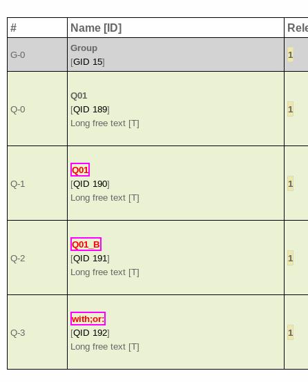 | Description | With old LSA : we allow : Same question code and Question code with different caracter | ||||
