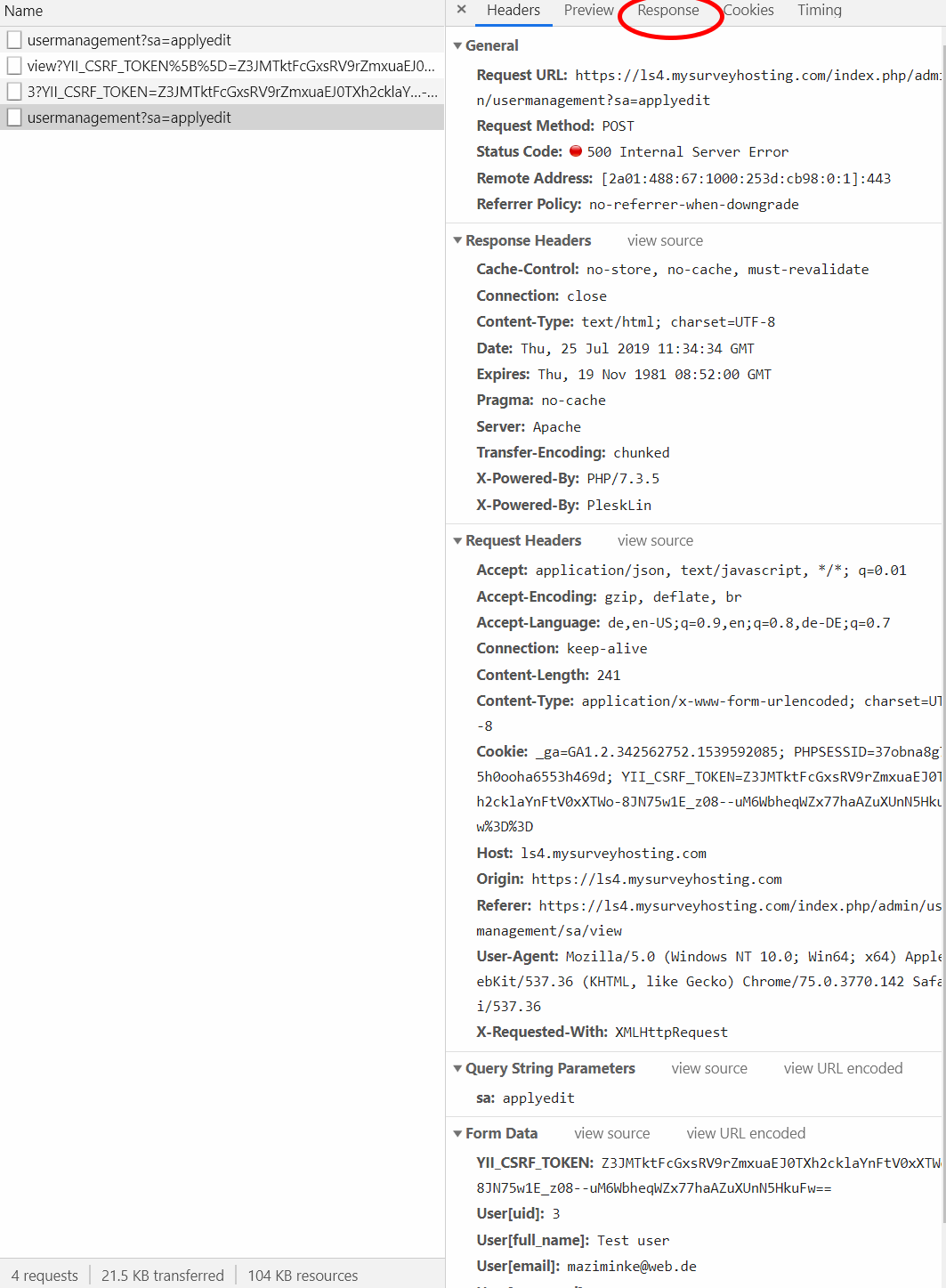 | Complete LimeSurvey version number (& build) | Version 4.0.0-RC2+190723 | ||||