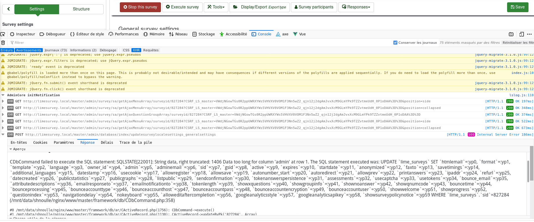 | Description | When try to save a long admin name : receive a 500 erro in XHR | ||||