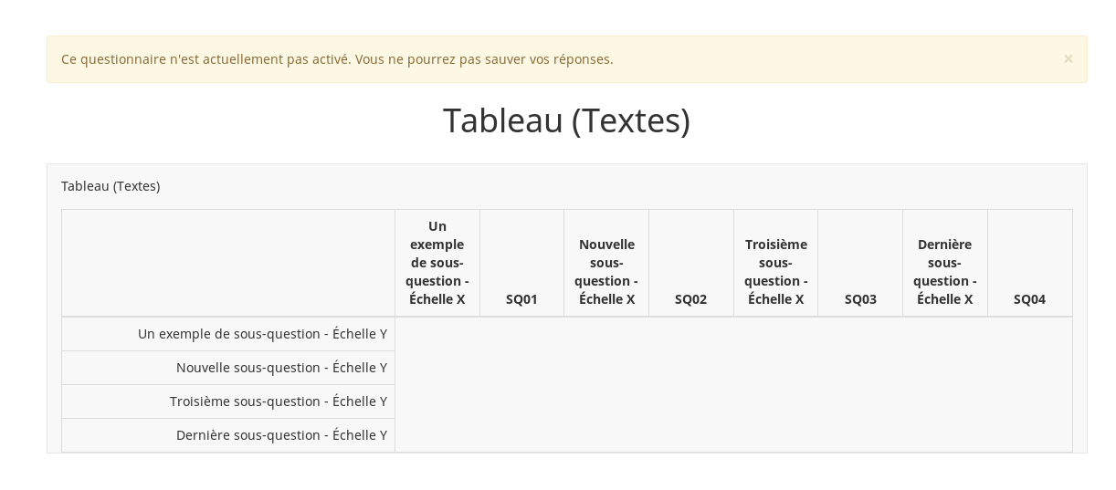 | Summary | 15225: Array text question type : line is empty | ||||