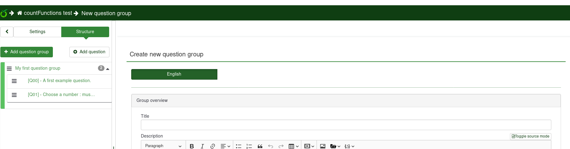 | Steps To Reproduce | Structure/ Create a new group button | ||||