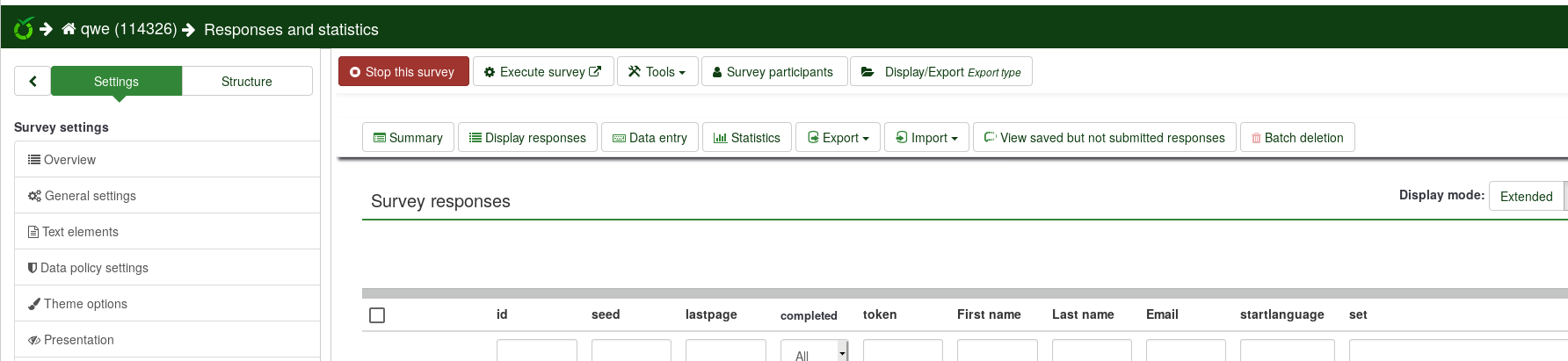 | Complete LimeSurvey version number (& build) | latest | ||||