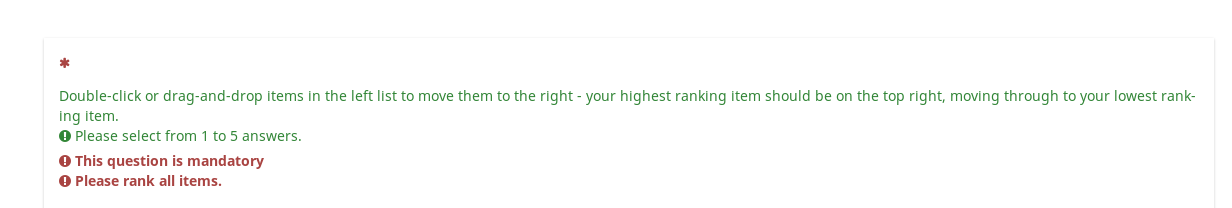 | Summary | 15353: Mandatory ranking question has strange rules | ||||