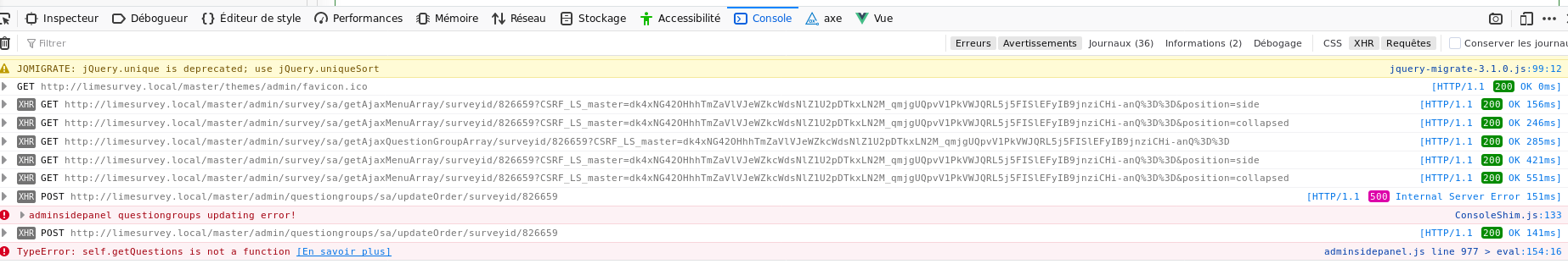 Indirect modification of overloaded property Question::$subquestions has no effect (./application/controllers/admin/questiongroups.php:462)